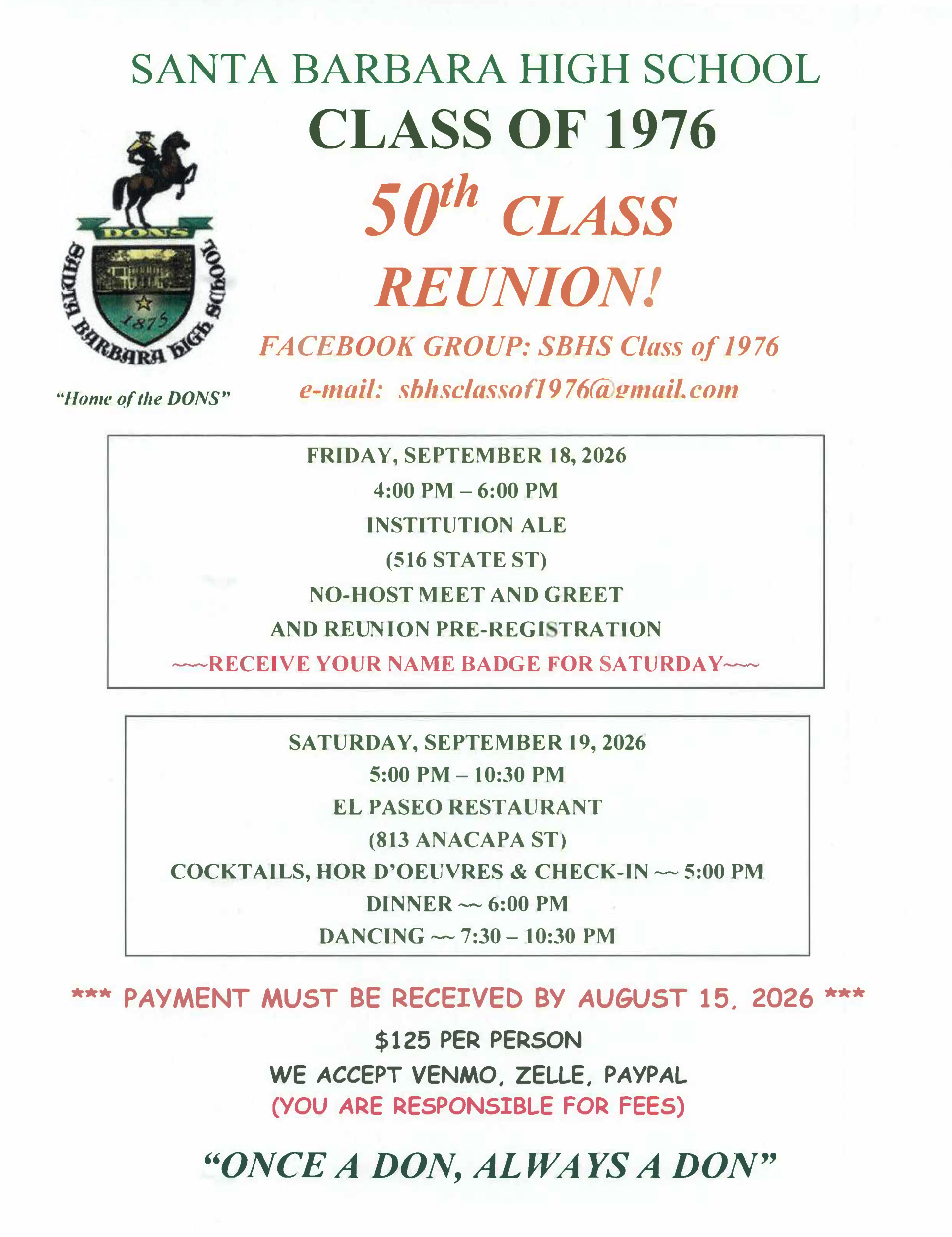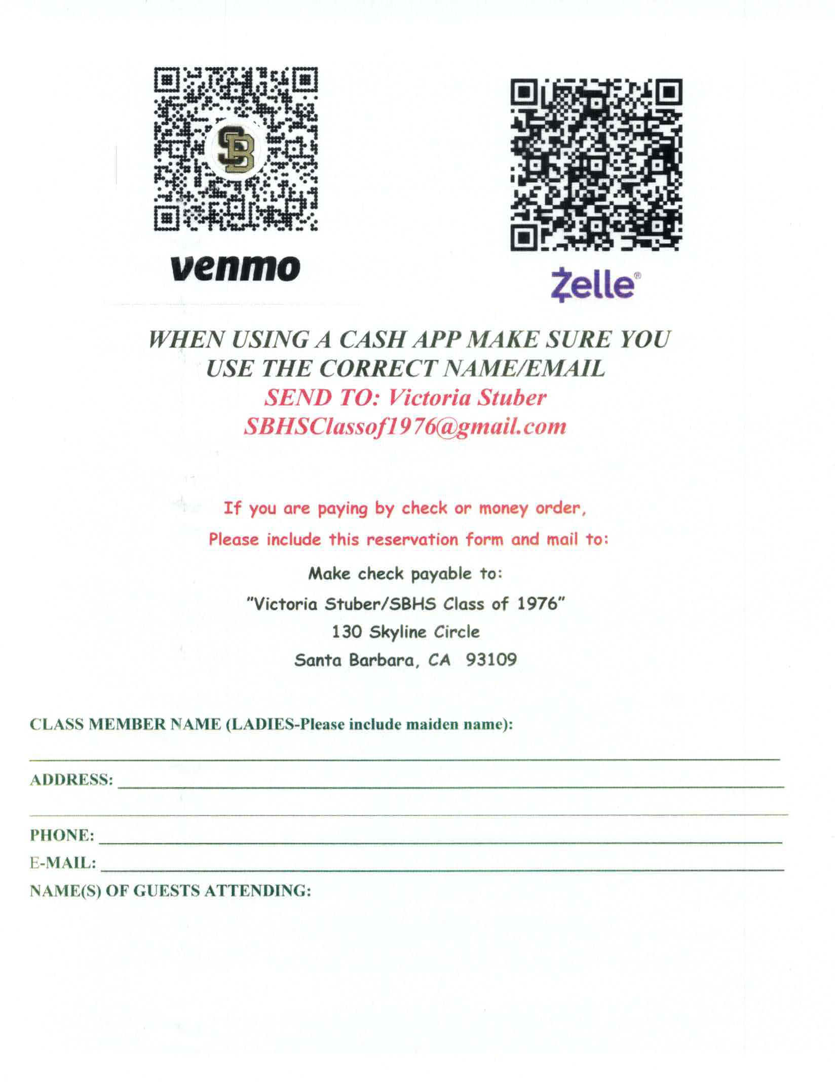 In FIVE months we will celebrate our 50 year class reunion!!! Attached is our invitation. We have been working feverishly, frantically, and diligently to put on an EPIC event!!! We want everybody to have a memorable time. Please pay attention to the deadlines. We also offer various payment options. If paying by cash app please include in the description...